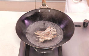 锅中注入适量清水烧开,倒入洗好的鸭舌。