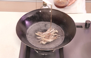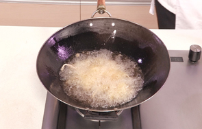 热锅注油,烧至五成热,倒入鸭舌,搅散,炸至金黄色。
