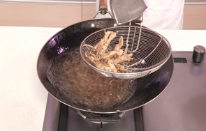 炸鸭舌时,最好分开放入,以免粘连。