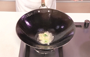 用油起锅,放入姜末、蒜末、葱段,爆香。