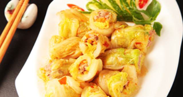 白菜这种小家碧玉的蔬菜,其实蛮适合细致的做法,比如这个,仔细卷起来,慢慢卤着吃。