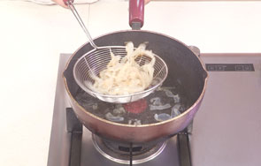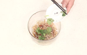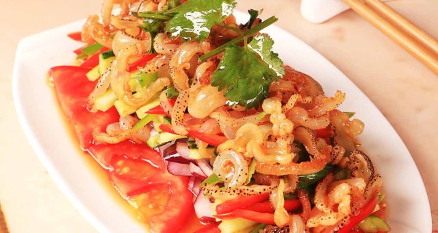 海蜇皮用热水焯过之后可迅速过一下凉开水,再挤干水分,这样吃起来会保持清脆的口感。
