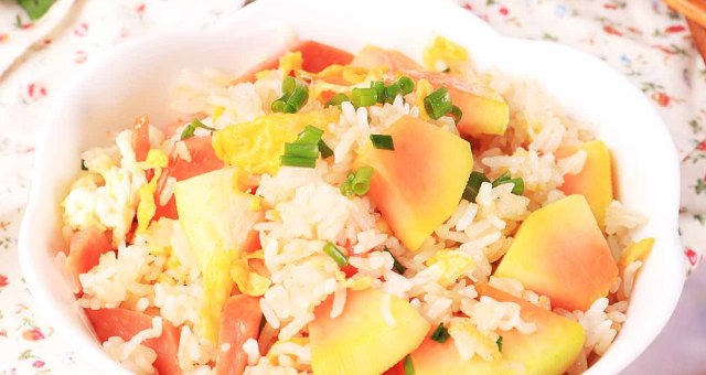 木瓜在女性眼中的地位堪比“人参”,将木瓜加入炒饭,简单方便,果食通吃。
