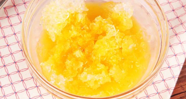 将冰碎倒入碗中。