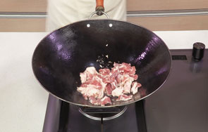 用油起锅,倒入五花肉,翻炒2分钟至出油。