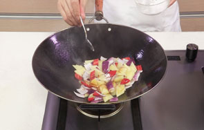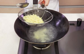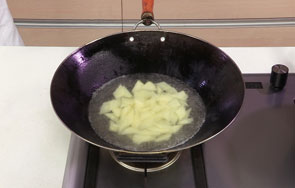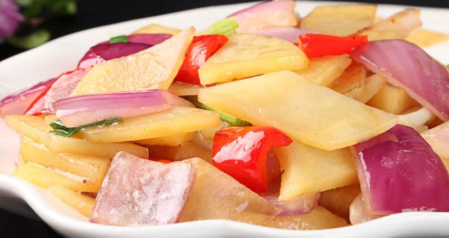将土豆焯熟后过凉水,再用大火快炒,这样可以使口感更鲜脆,色泽更诱人。