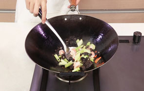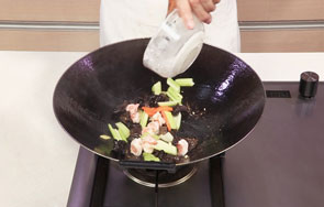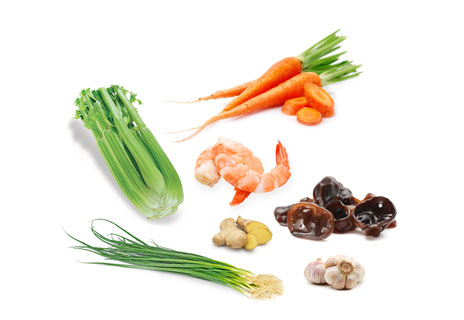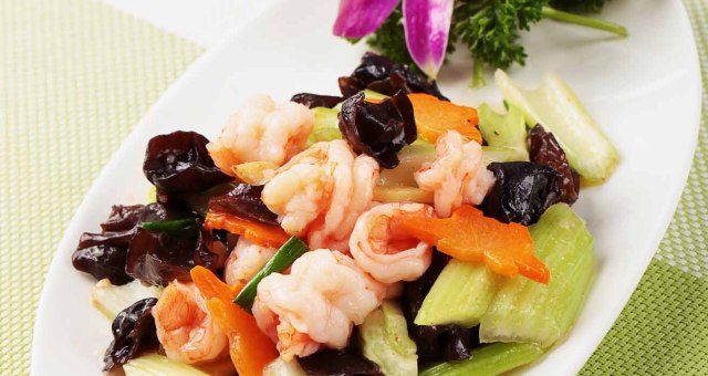 直接说功效吧:西芹的粗纤维促进肠道蠕动,木耳清理肠道,虾仁补肾壮腰。