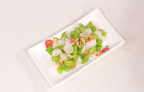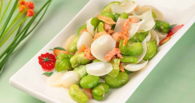 百合,常见与糖水中,或与西芹腰果搭配,这次配上蚕豆和虾米,鲜味很足,还很健脾胃。