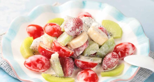 合理的膳食标准中,每日最好吃三种不同的水果会更有益健康,今晚回家就做一盘色彩缤纷的水果沙拉吧,淋上酸奶和沙拉酱,好看又好吃。