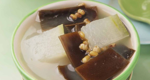 当清凉多汁的冬瓜和甘凉解暑的绿豆、排毒瘦身的海带一起煮汤时,这款汤清淡滋润,适合在炎热的夏季食用。