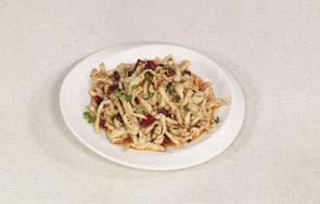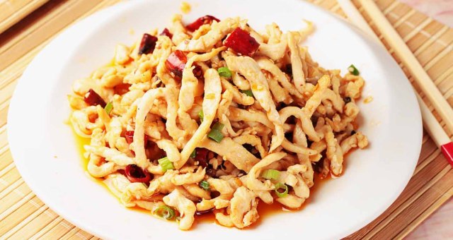 这道鸡丝麻辣鲜香,鸡肉嫩滑,爱吃辣的有口福了。若不小心吃辣了,还可以喝一些牛奶或酸奶,对解辣有效果呵。