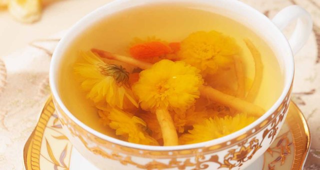 菊花含有B族维生素、纤维素、磷、钾等成分,具有疏散风热、平肝明目、清热解毒等功效。