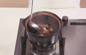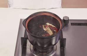砂锅中注入适量清水烧开。