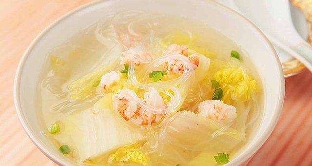 娃娃菜上漂浮着嫩红的虾仁,下面还隐藏着滑嫩的粉丝,饭前来一碗,胜过活神仙。