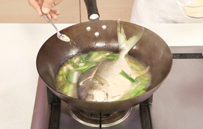 妈妈说,千滚子的肉,万滚子的鱼。鲳鱼味鲜刺少,小火慢煎,煮滚炖透,,又完整又漂亮,青蒜苗一烫,香!