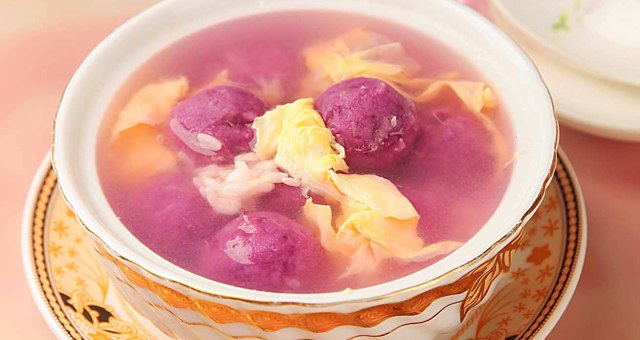 甜甜的酒,糯糯的紫薯丸,像泡着蜜一般的滋味,真想再来一碗,也是醉了。