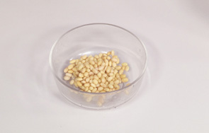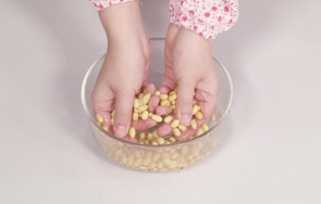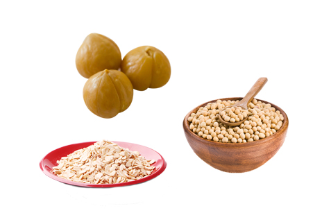 把已浸泡8小时的黄豆倒入碗中,再放入燕麦。