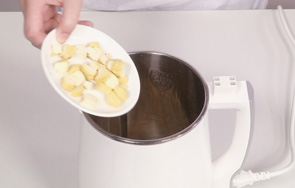 板栗肉要切得小一点,以免损伤豆浆机的刀片。