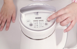盖上豆浆机机头,选择“五谷”程序,再选择“开始”键,启动豆浆机。