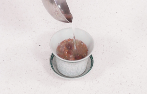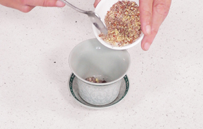 取一个茶碗,放入桂圆肉、酸枣仁粉。